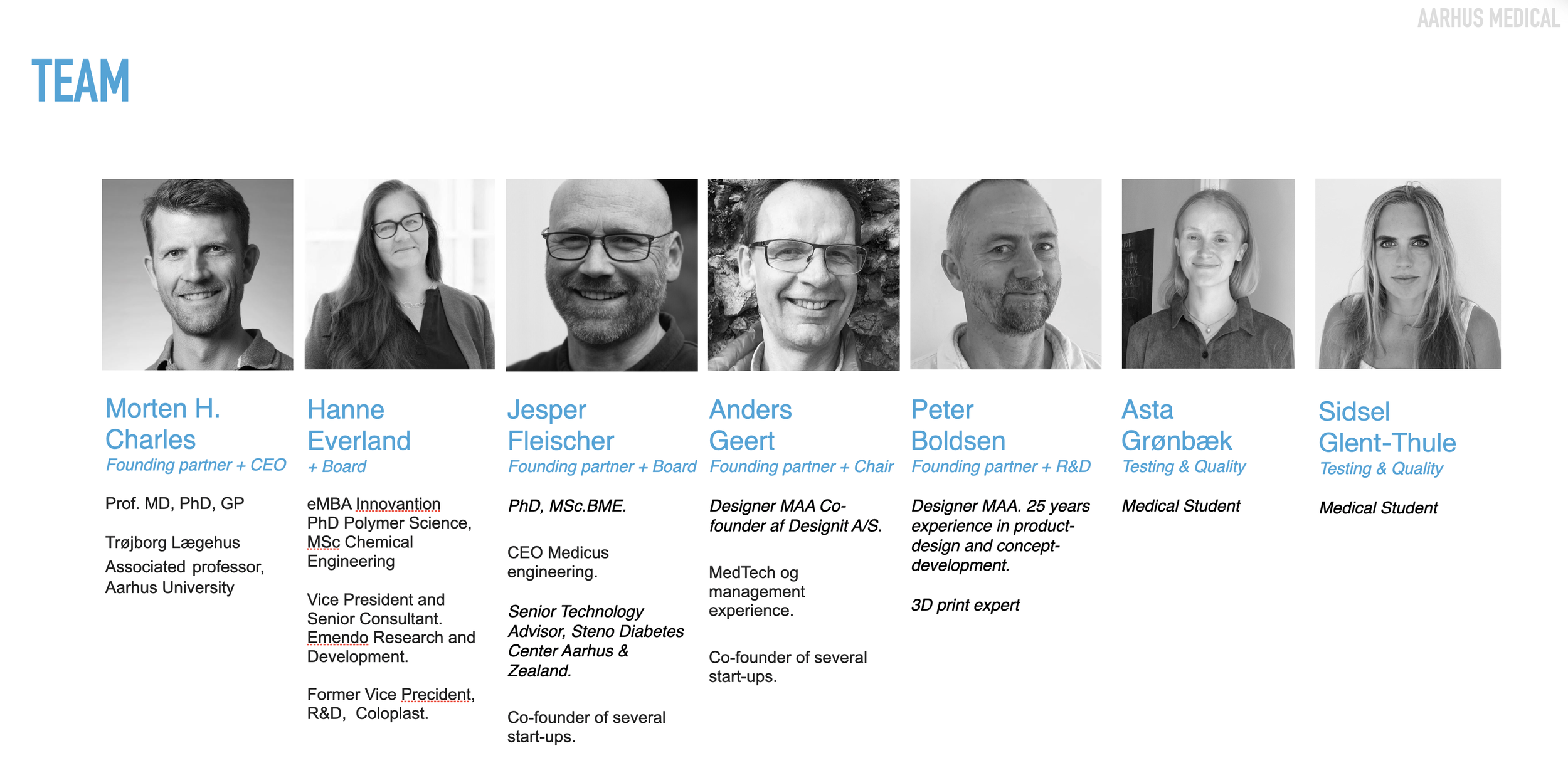 AARHUS MEDICAL is run by a dedicated and boot-strapping team of successful serial entrepreneurs with broad medical device experience who have led several products from idea to market. Everyone has been involved from the start through needs specification, idea generation, concept development, stakeholder involvement and laboratory tests.